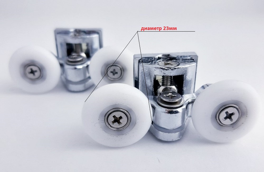 Комплект роликов для душевой кабины цельнометаллические . Ролики подходят для широкого модельного ряда душевых кабин отличие только в диаметре колес при выборе комплекта потребуется замерить.