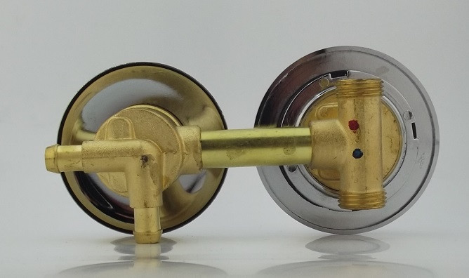 смеситель для душевой кабины 2х режимный 90мм (Хомут) смеситель в душевую кабину с межосевым расстоянием 90мм (расстояние по центрам ручек, по центрам отверстий в стекле или душевой панели) способен направлять потоки воды двумя разными способами: через ручной душ, душ тропический