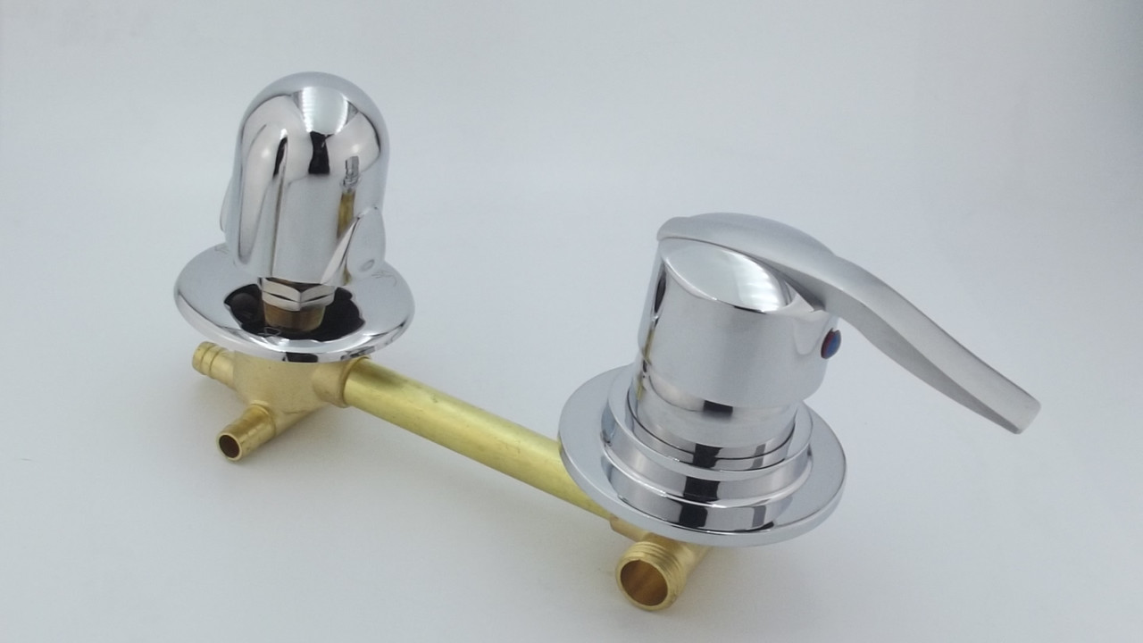 Трехрежимный смеситель для душевых  кабин с межосевым расстоянием  150 мм (расстояние по центрам ручек, по центрам отверстий в стекле или душевой панели) Здесь способен направлять потоки воды тремя разными способами: через ручной душ, душ тропический и через форсунки для спинного массажа.